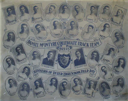 The 1923-1924 Daniel McIntyre Track Team were Inter-High Champions. Here is a picture of that team with the principal of the school, C.K. Newcombe, and their coach, W. Mountford. Click on the picture to see more detail.