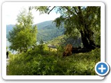 I crossed the road and walked up a paved road to get a view of the harbour area. I went back down to road level and instead of walking back the way I'd come, I walked on the road, being very careful to face traffic and watch around a rock face for oncoming vehicles. Some ladies were walking to the port, rolling along their suitcases, to catch the railway to their next destination and I led the pack to make sure they'd be safe with the extra space dragging their cases created on the road. On the far side of the rock face, the ladies continued on but I noticed several people walking up toward some trails. Although the climb was quite steep, I decided to at least check out the paths... and the view from above.