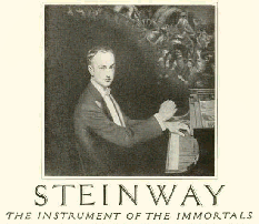 | A Steinway piano, advertised as the "Instrument of the Immortals" was $875 and up (plus transportation). Mischa Levitzki (pictured to the right) and other notable pianists of the time such as Paderewski and Hofmann were spokepersons for the piano company. |