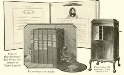 RCA Victor advertised a "Music Arts Library" which consisted of a set of six volumes representing "a great variety of achievement by the world's greatest artists". |