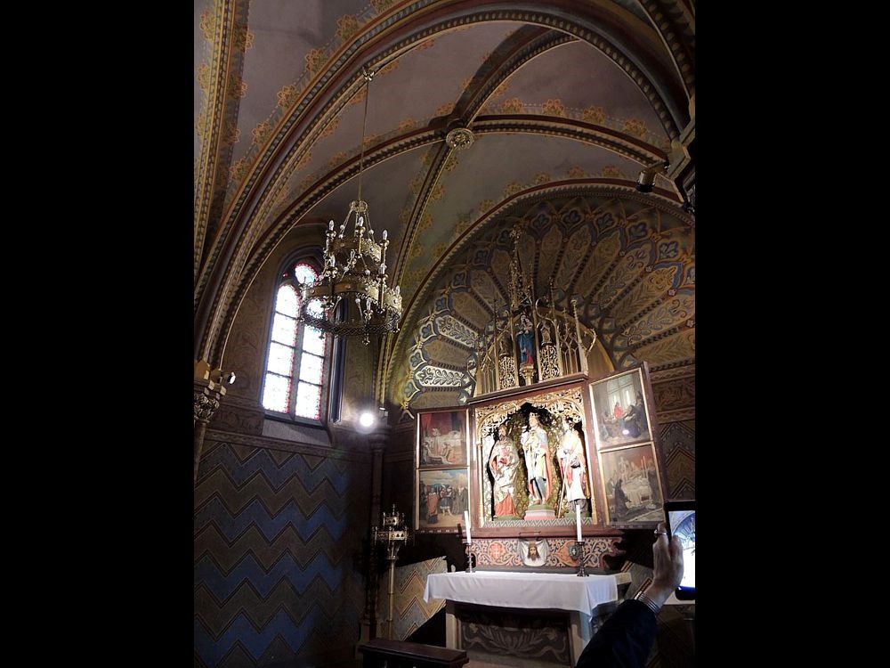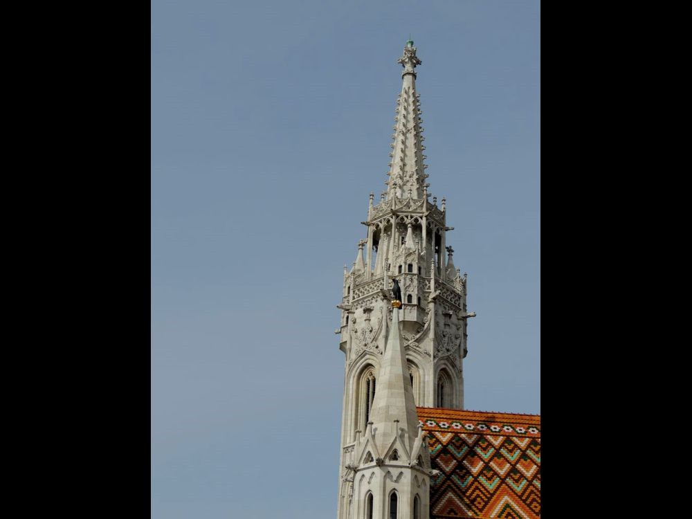 April 12th Our group now expanded, we set off to explore Budapest early. Our local guide was George.We drove along the Danube then crossed a bridge and passed the Buda Castle, now used for a variety of things including museums, art, and government offices. We exited the bus to walk up the street to the 13th century Matthias Coronation Church. This church was not only gorgeous from the outside with its mosaic roof but also gorgeous inside. My favourite feature was a round sculpted window high above the baptismal font. Once back outside, we climbed some stairs to catch the view from Fisherman's Bastion. The views towards the Hungarian Parliament on the Pest side of the river were awesome. We had a little time on our own to explore the immediate area so I walked around the church to see its back side... Even more spires, gorgeous doors... such beauty! When it was time to leave, we walked down many stairs towards the bus and had yet another wonderful view of a beautiful city. |