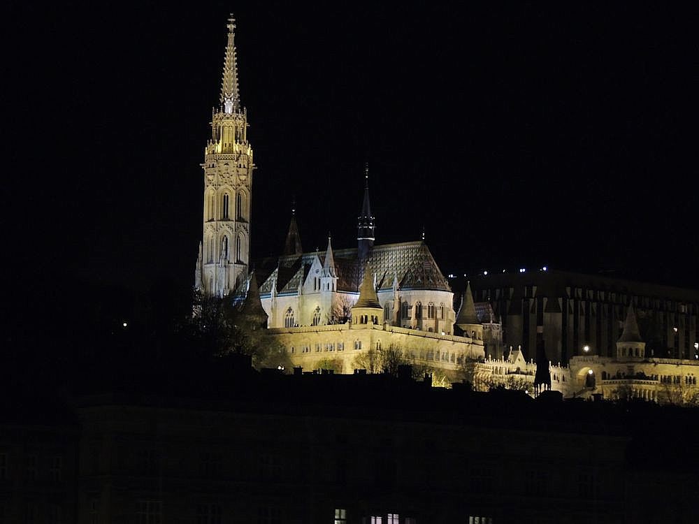 April 12th My day wasn't yet complete. Although Lynn had opted out, I had chosen to go on a Danube dinner cruise. Lynn stayed on shore with Adam and Amanda and they had dinner somewhere near Octagon Square. Julie, Ave and I shared a table with Lou, a Gate 1 employee scouting his territory.We boarded the boat at the Parliament. We cruised first around Margaret Island to the north then down the Danube as we ate a delicious buffet meal. As we returned towards the Parliament, George gave a commentary on the buildings we were passing. Although I couldn't hear him well, I still recognized many of the buildings and sites, including the Liberty Statue, Matthias Church, the Buda Castle, the monastery on the hill where the monk was rolled down the hill in a barrel, etc. I am really glad I opted to go on this cruise because the evening was mild and the lighted buildings along the shore were gorgeous. When Albert picked us up after the cruise, he drove along the river before turning towards the direction of the hotel. We were delayed there (near the river) for at least 5 minutes... a protest march was occurring. Thousands and thousands of students were marching in protest of unfair university regulations. When we came across them, they were marching towards Parliament. Later that night, you could see the same group march past our hotel back towards the Octagon. Lynn went back outside to see it. |
