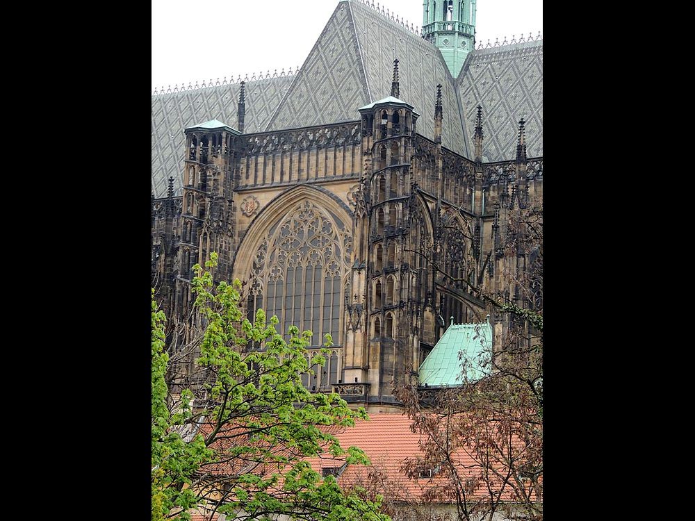 April 17th For our afternoon tour, we met in the lobby and walked down the street to the bus where Albert was waiting. We crossed the river, went through a tunnel and ended up on top of a hill at the entrance to Prague Castle.The grounds near the entrance were very beautiful and spring blossoms made it more so. The two guards at the actual entrance were very spiffy. Alexandra showed us how the castle was added onto... in the tunnel we walked through, you could see how the outside walls had been altered to add in new space by closing the archways in. When we entered the courtyard, Chapel of the Holy Cross and Kohl/s Fountain were in front of us. |